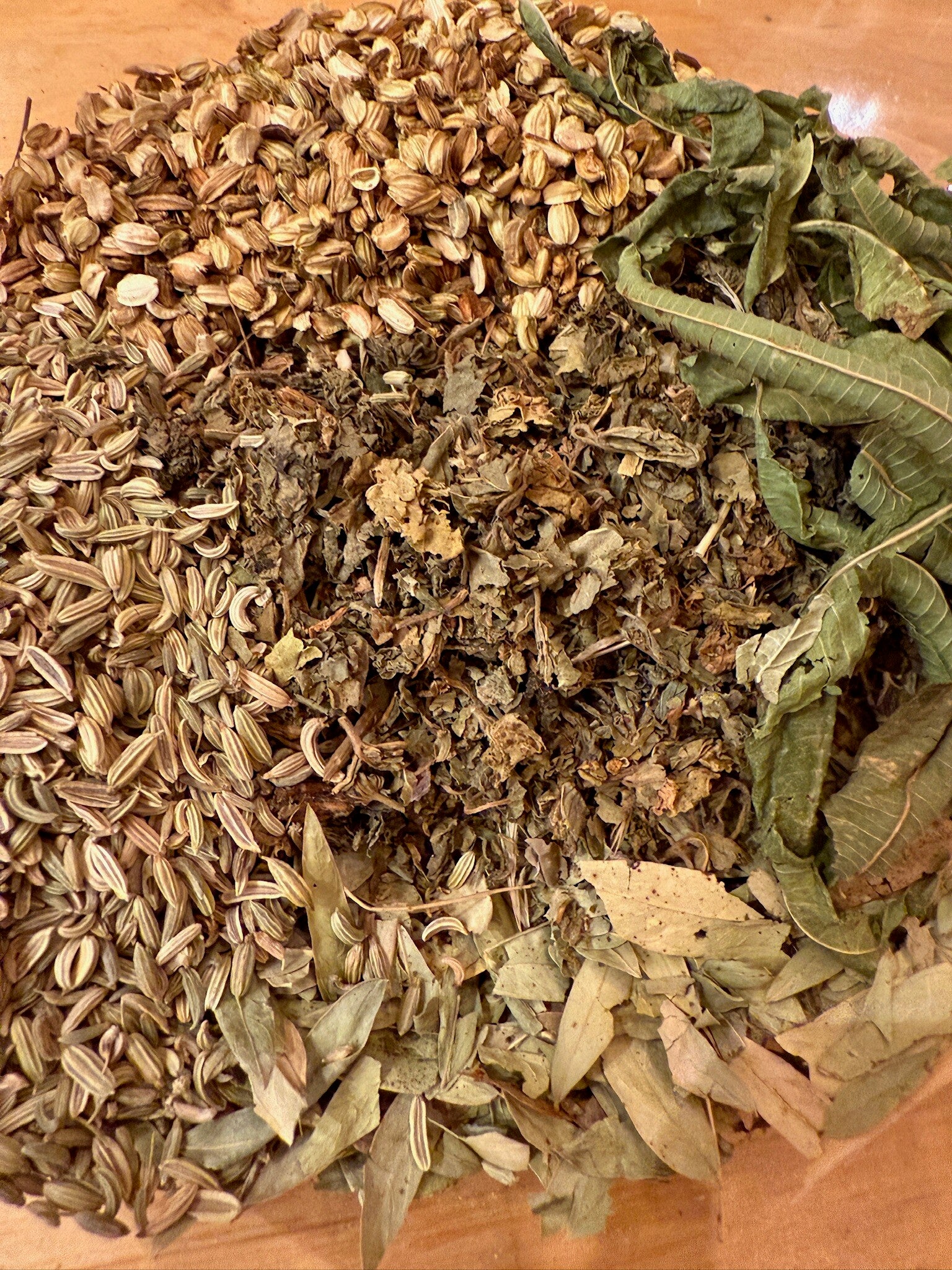 - Drainage des intestins : Fenouil, Verveine citronnée, Mauve, Angélique et Séné ;